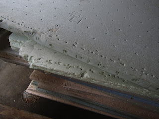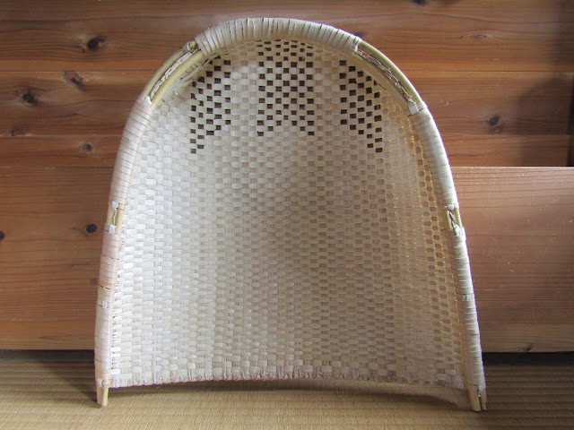 この織り機は、糸(黒く見えるのが糸)が掛けてあるので、経糸(たていと)を穴と溝に一本おきに通している様子、紐にすると細くなる様子などが、よくわかります。