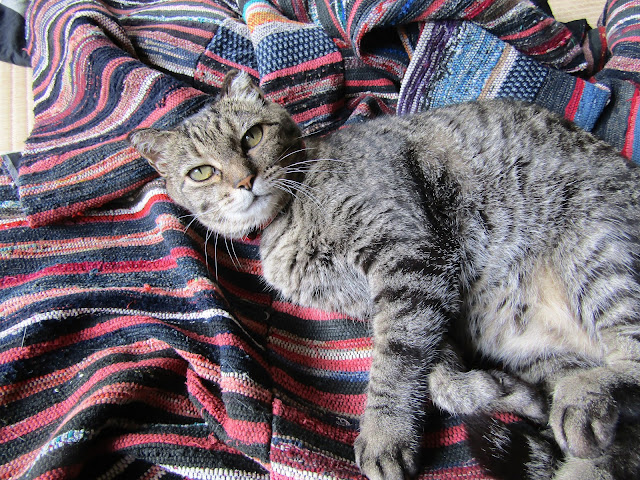 トラは裂き織りがすっかり気に入って、私が作業している数日、いつでも裂き織りに乗っていました。