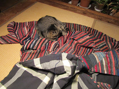 つなぐためには、3センチ以上重ね、切り口を表からも裏からも巻きながらかがり合わせてほつれにくくしました。さらにその上から。しっかりした木綿布で補強しました。こうしておけば、表につなぎ目が見えないし、少しくらい引っ張られてもすっぽ抜けないで、木綿布が守ってくれます。