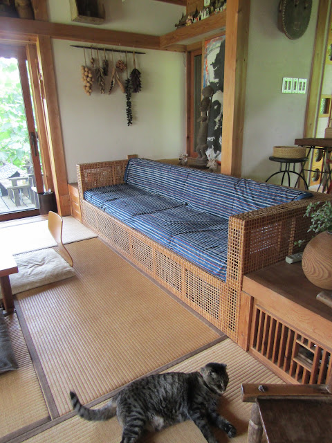 置いているマットは、かれこれ40年も前にタイで買ったラタンの椅子についていたもので、日本でもその椅子を使っていました。