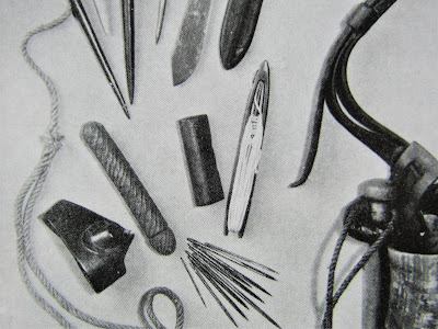 動物の骨でつくったのかと思いましたが、これはかなり濃い色の網針、網針のイラストは何か所か出てきましたが、どんな材料でつくられているかは書かれていませんでした。いずれにしても、漁師さんは、アジアの漁師さんたちのように、気軽に網針をつくれなかったことでしょう。