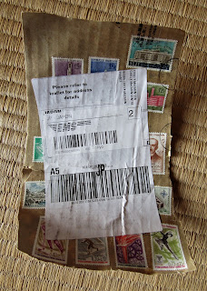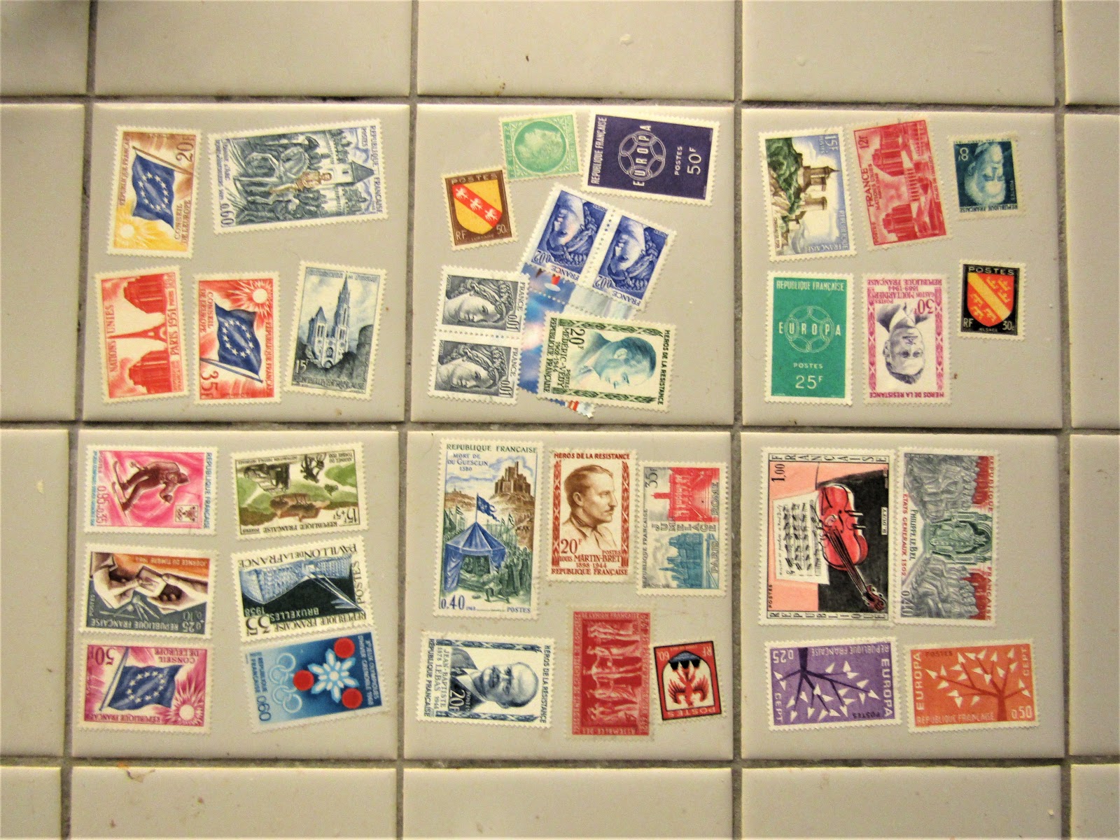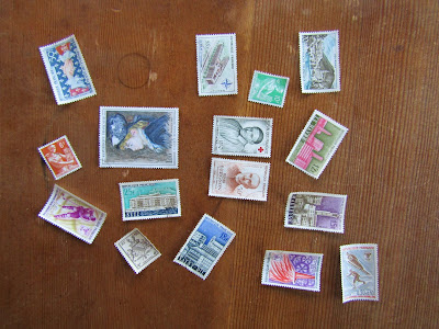 アンタイディーのブログに、フランスから届いた荷物に、たくさんの古い切手が貼ってあったという写真が載っていました。