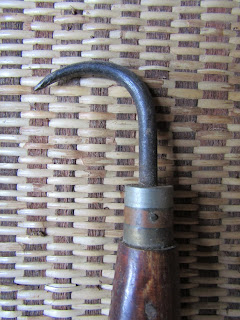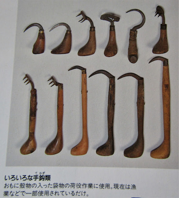 手鉤は、重くて持つところがない、俵やかますを持つときの必需品でした。お尻の部分が太いので、手の中からすっぽ抜けることもありません。