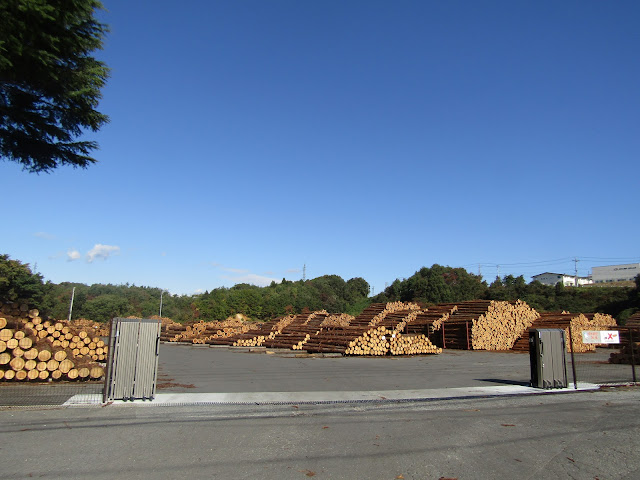 4万坪以上ある敷地のあちこちに原木が運び込まれ、積み上げられていました。