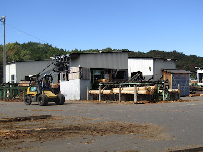 その、八溝杉の原木を加工している、福島県塙町のK木材を、今度家を建てようとしているMちゃんとともに見学しました。