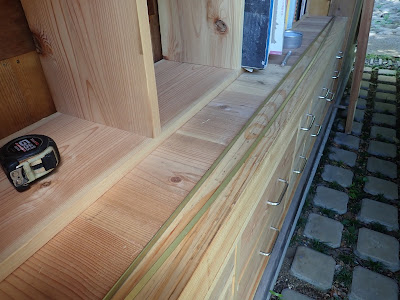 しばらく前から、駐車場につくったファイル棚の扉をつくっていました。