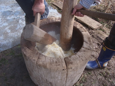 石窯の上には、屠った豚たちの頭がい骨が置いてありました。