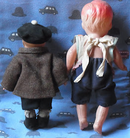 これは、かわいらしいですよね。最初の写真を見て、お洒落~!靴も素敵~と思いました。少しレザークラフトをしていますので。ネクタイというか、それも革ですよね。フランス人と結婚した日本人の友達、フランスでは靴が大事なので子供用の靴も高価な良い品を履かせる、と言っていました。大阪に帰省した時、友達の子供の服装が洒落ていて素敵な革靴を履いていて。この人形を見て、思い出しました。その時、うちの長男、友達の長男、どちらも2歳くらいだったと思いますが。電車に乗って子供たちが窓の方向に向いた時、私は長男の靴を脱がせましたが友達は脱がせませんでした。フランスでは靴を脱がせたりしないから、と。